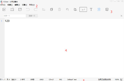 1. 界面的左上角是小黑记事本的logo和当前显示的文本信息:文本名-文本格式-小黑记事本。