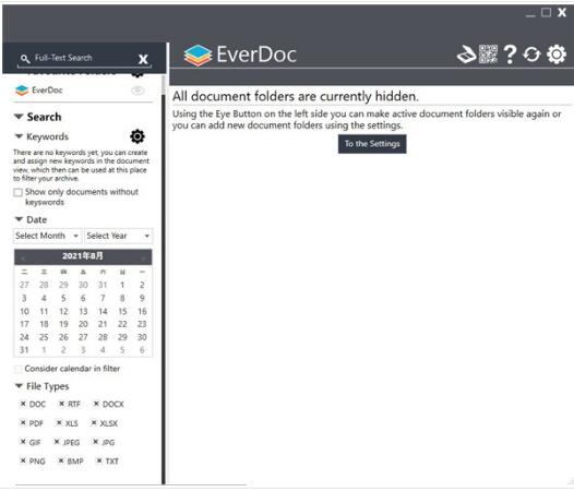 6、在此界面中您可以进行常规设置,查看标准文件夹,知识兔设置文档文件夹管理,配置关键词以及EverDoc移动等功能;
