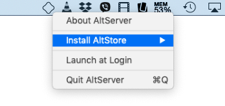 4.在Mac上,知识兔打开工具栏,然后知识兔在右上角单击AltServer>安装AltStore,然后知识兔选择您的设备。