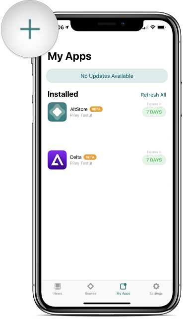 5.或者,您可以启动AltStore应用程序并知识兔点击左上角的“ + ”图标,转到下载位置,它应显示您设备上最近下载的.ipa文件。