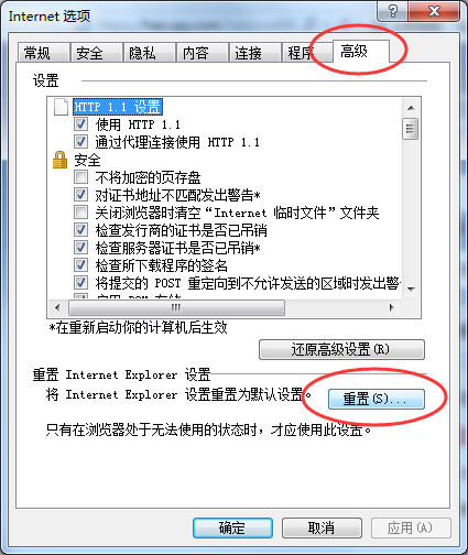知识兔点击“高级”选项卡,之后选择“重置”