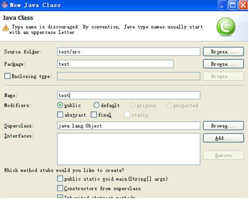 5、在弹出的类对话框中输入类名称,再知识兔点击finish【完成】。最后我们就可以使用eclipse软件编写代码了。