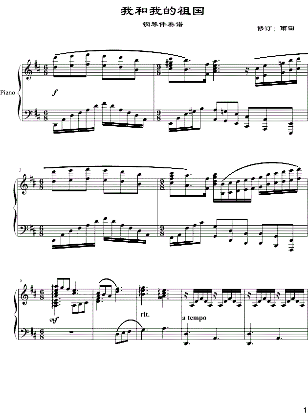 我和我的祖国简谱歌谱完整版下载-我和我的祖国简谱伴奏谱高清图片