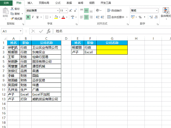 1.根据姓名和职业两个条件查找公司名称。