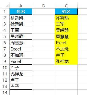2.提取不重复的姓名。