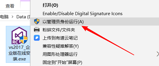 3、知识兔选择vs2017企业版,右键以管理员身份运行。
