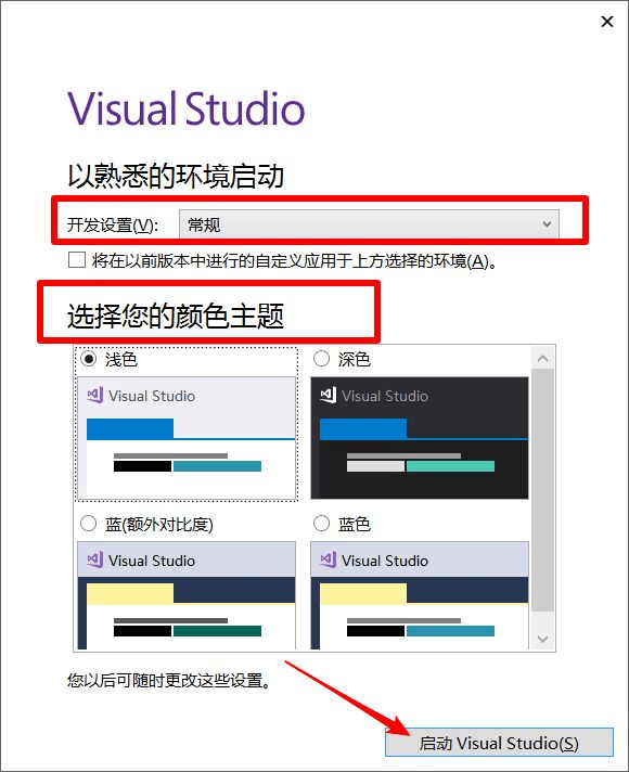 9、开发设置选择常规,知识兔选择自己喜欢的主题颜色,之后知识兔点击启动vs。