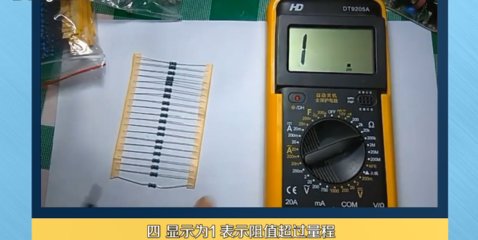 向上调大量程,测出数值,读熟为0,则量程太大,需调小。若显示一直为1,则说明电阻已断路。
