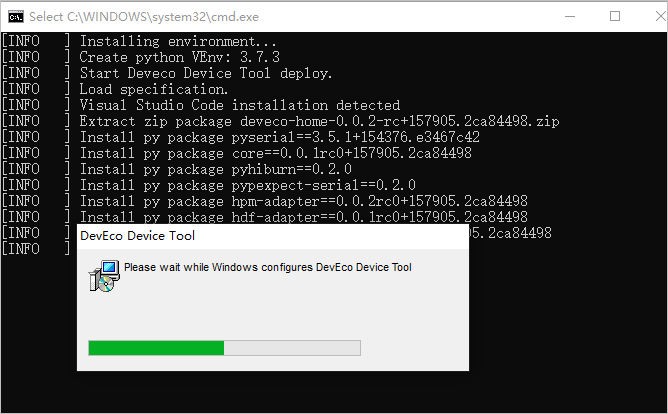 安装过程中,会自动安装DevEco Device Tool所需的依赖文件(如C/C++和CodeLLDB插件)和执行程序。