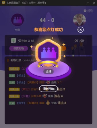 6、当游戏结束的时候点结束,恭喜全场用户点灯成功!