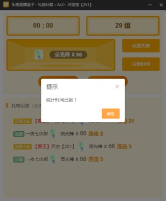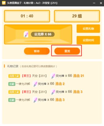 如果知识兔要开始新的一次礼物计数,则知识兔点击重置将会清空原来的礼物组数,礼物类型和时间是不变的,知识兔点击开始进入计数模式中。