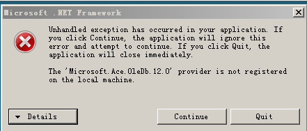 提示:未在本地计算机上注册“Microsoft.Ace.OleDb.12.0”分享程序。