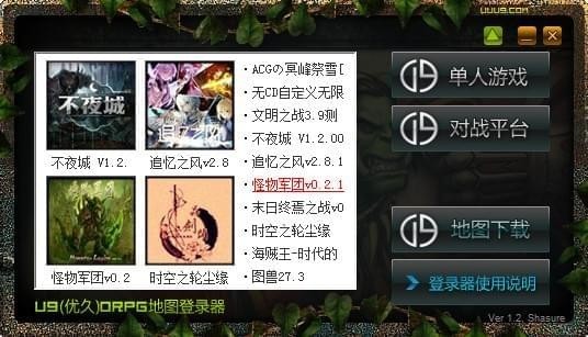u9orpg登录器是专为魔兽游戏所打造的一个登陆工具,本软件可以快速就帮你登陆进游戏当中,而且知识兔还有多种游戏补丁和地图可供你选择畅玩,专为爱玩魔兽世界的你所设计打造!