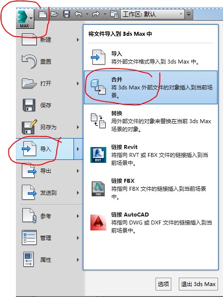3DMax导入模型有以下三种方法: