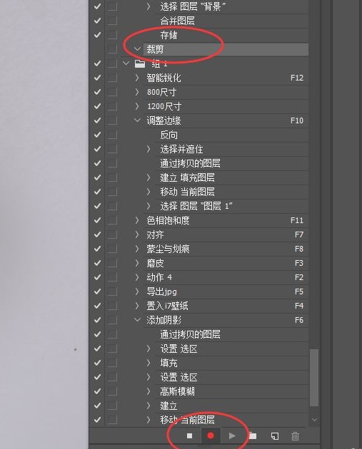 5.这时我们重新打开一张图片,选中“裁剪”这个动作,然后知识兔知识兔点击面板下方的三角形播放按钮,开始执行这个动作。